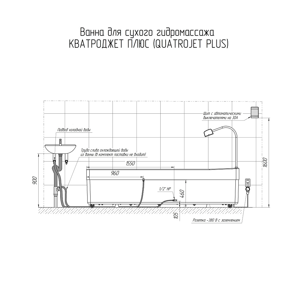 Ванна для сухого гидромассажа КВАТРОДЖЕТ Плюс предназначена для воздействия на мягкие ткани тела человека при помощи струй воды, но без непосредственного контакта с жидкостью, с целью оказания болеутоляющего действия, устранения хронических воспалительных процессов, улучшения кровоснабжения и трофики массируемых мягких тканей и внутренних органов благодаря рефлекторному механизму, облегчения выведения лишней жидкости из организма, создания расслабляющего и успокаивающего эффекта, активизации метаболизма. Основным отличием модели КВАТРОДЖЕТ Плюс от базовой версии КВАТРОДЖЕТ является наличие двух гидромассажных насосов, создающих более высокое давление при работе 4-х форсунок и значительного расширения алгоритмов массажа за счет полностью переработанной системы движения каретки.